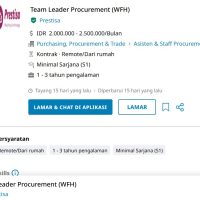 Kini, dalam upaya untuk terus meningkatkan mutu operasional dan memperkuat jaringan supply chain, Prestisa membuka kesempatan bagi para profesional berpengalaman untuk bergabung dan mengambil peran strategis dalam tim pengadaan perusahaan sebagai Team Leader Procurement yang dapat bekerja secara Work From Home (WFH).