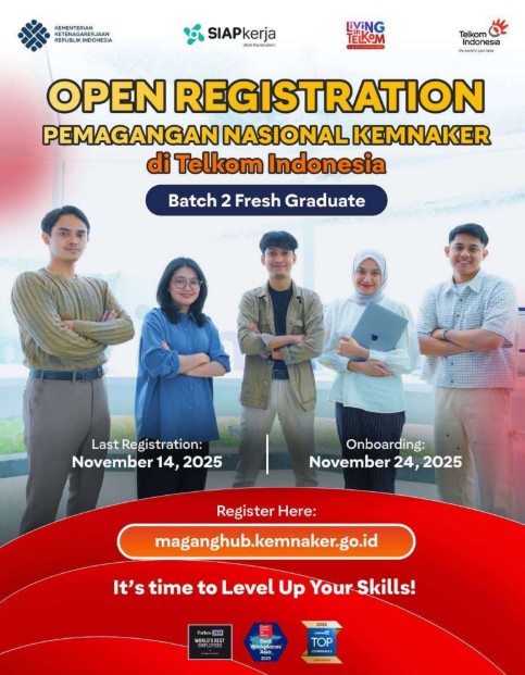 Sebagai bagian dari komitmen dalam mencetak generasi muda Indonesia yang siap kerja dan kompeten di bidang industri digital, Telkom Indonesia kembali membuka Program Pemagangan Nasional Batch 2 Tahun 2025.
