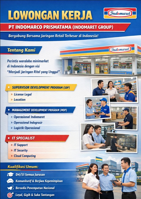 Seiring berkembangnya kebutuhan operasional dan ekspansi perusahaan, Indomaret Group membuka kesempatan bagi talenta muda terbaik untuk bergabung melalui beberapa program pengembangan karier dan posisi spesialis.