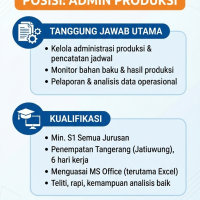 Sebagai Admin Produksi yang ditempatkan di unit manufaktur Tangerang (Jatiuwung), Anda akan bertanggung jawab atas poin-poin krusial berikut:
