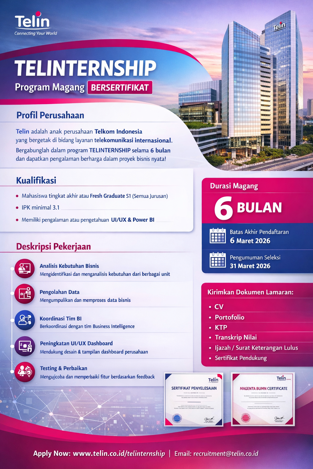 Program TELINTERNSHIP adalah program magang bersertifikat yang dirancang agar peserta dapat: