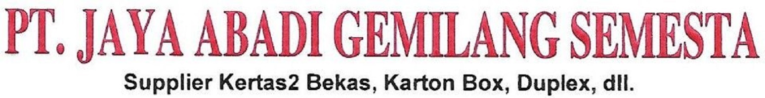 PT Jaya Abadi Gemilang Semesta telah hadir di industri bahan baku kertas sejak 1984 dan tumbuh menjadi salah satu pemain terpercaya dalam pengadaan dan distribusi bahan kertas di wilayah Jakarta — Tangerang. Dengan kantor pusat di Menceng, Jakarta Barat dan cabang operasional di Pasar Kemis, Tangerang, perusahaan kami melayani kebutuhan pabrik percetakan, bisnis pengemasan, serta pelaku industri kreatif yang membutuhkan pasokan kardus, duplex, HVS, ivory, NCR, SWL dan berbagai jenis kertas lainnya.
