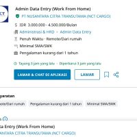 Posisi yang Dibuka: Admin Data Entry (Work From Home)